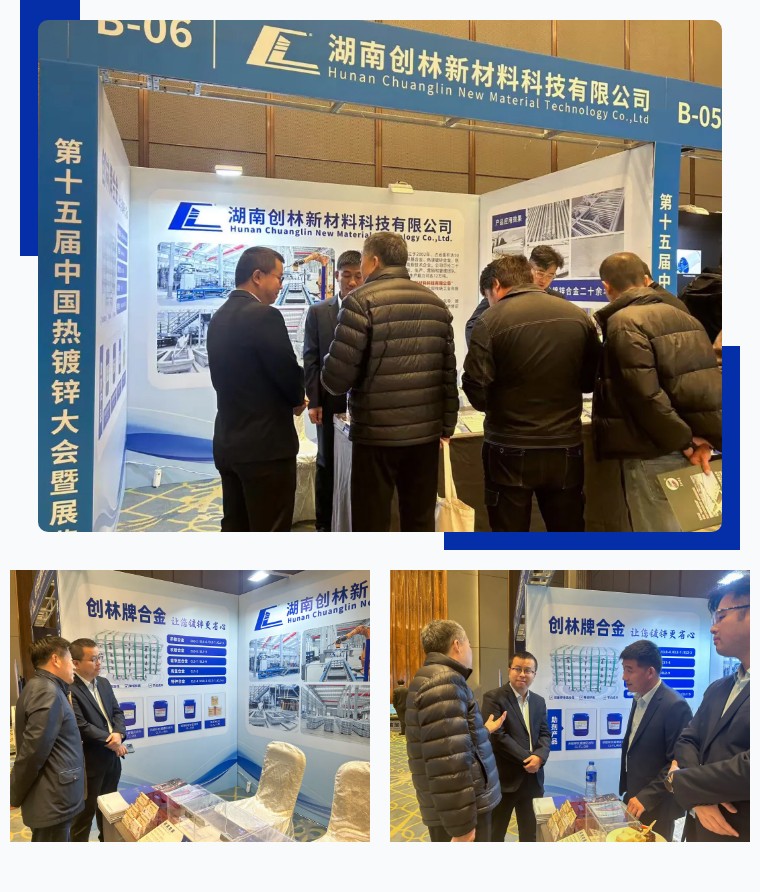 會(huì)上,湖南創(chuàng)林新材料展示了多款熱鍍鋅合金產(chǎn)品,這些產(chǎn)品在提高鍍鋅效果、降低鋅耗等方面表現(xiàn)出色,吸引了不少行業(yè)內(nèi)人士的關(guān)注。總經(jīng)理周業(yè)翔攜團(tuán)隊(duì)熱情接待參觀嘉賓,并就產(chǎn)品技術(shù)、市場(chǎng)開拓、合作發(fā)展等事宜與嘉賓進(jìn)行探討分享,交流互鑒。